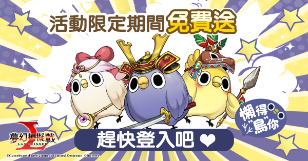 今回「めんトリ」はサービス開始から二周年を迎えた本格シミュレーションRPG『ラングリッサー モバイル』と、日本に続き、台湾でもコラボ開始!6月8日よりゲームにログインするだけで、「めんトリ」、「ヒデヨシ」、「イモウト」のコラボ限定兵士スキンがプレゼントされます。