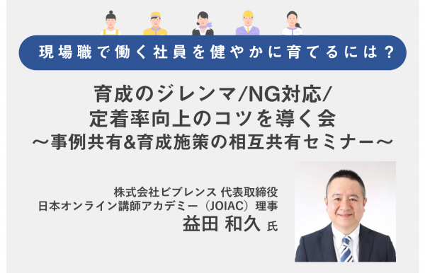 今回はそんなお悩みについて大手企業の現場職で働く社員への講師経験を多数お持ちであり、日本オンライン講師アカデミー(JOIAC)の理事としてもご活躍の益田和久氏より、実際にあった事例をもとに現場スタッフの関わりポイントやNG対応、現場実践に落とし込む仕組みなど、育成のポイントを解説いただきます。