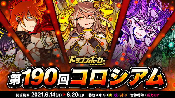 株式会社アソビズム(本社:東京都千代田区、代表取締役:大手智之)は、App Store・Google Playにて好評配信中のリアルタイム合体カードバトル『ドラゴンポーカー』で、2021年6月14日(月)より「第190回コロシアム本戦」を開催いたします。