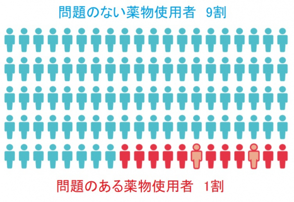 図1 青系「問題のない薬物使用者」9割と赤系「問題のある薬物使用者」1割