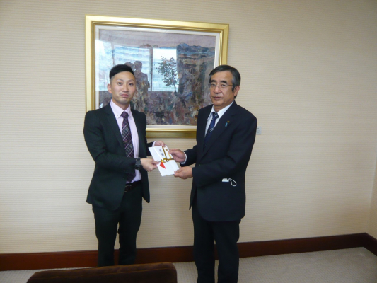 新潟県贈呈式(左:ノジマ新潟エリア長 右:佐久間豊副知事)