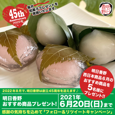 当キャンペーンは、設立45周年に向けて、毎月明日香野の和菓子を皆さまにお楽しみいただくキャンペーンの第2弾です。
