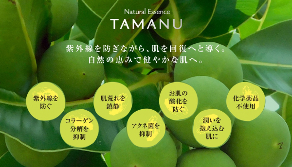 タマヌオイルは、沖縄に自生する常緑樹“テリハボク”の種子から採れる天然のオイルです。
