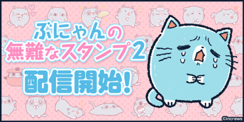 株式会社インクルーズ(東京都渋谷区、代表取締役社長 山﨑 健司)は、LINE株式会社(東京都新宿区、代表取締役社長 出澤 剛)が運営するコミュニケーションアプリ「LINE」内のスタンプショップにて、「ぶにゃんの無難なスタンプ2」LINEスタンプを2021年6月17日(木)に配信致しました。