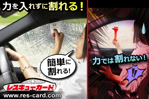 バランスボディ研究所は、7月5日(月曜日)、水没や災害により、車に閉じ込められてしまった際、車の窓枠に差し込み、指で弾くだけで瞬時に窓ガラスが割れるクレジットカードサイズの「車外脱出用ツール」【レスキューカード】の正式販売を開始することをお知らせいたします。(https://res-card.com/)