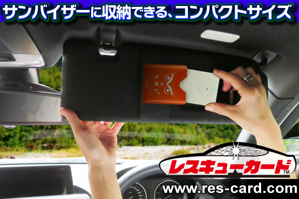 車のサンバイザーに差し込んでおけるため、パニック時でも迷うことなく、すぐに手にすることができます。