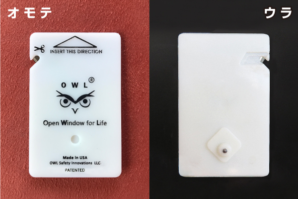 (3)【レスキューカード】を窓枠(上もしくは横)の隙間に差し込み、カードの端を持ち上げて、離す