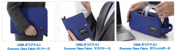 「ANA STORE(エーエヌエーストア)/ANAショッピング A-style(エースタイル)」(https://www.astyle.jp/)にて、航空機のエコノミークラスのシート生地(ストック生地※)を使用した「ANAオリジナル Economy Class Fabric」シリーズのPCケース、マスクケース、ガジェットポーチを販売いたします。