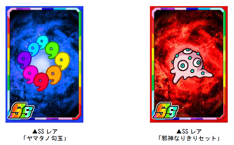 ダンジョンのボスモンスターを倒すと、まれに新たな限定子分カード「ヤマタノ勾玉」「邪神なりきりセット」が手に入ります。