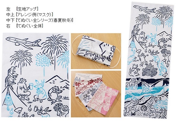 2021年6月22日(火)10時~ 「かまわぬ for ANAてぬぐい 鳥獣戯画(夏旅)」、「かまわぬ for ANA巾着」