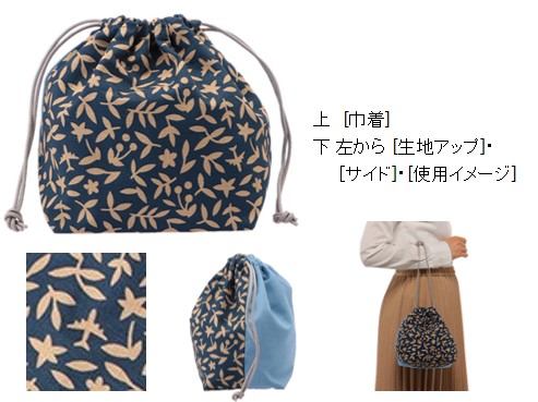 和柄の中に機影が描かれた巾着。裏面や内側の水色の生地はANAらしさを感じさせ、涼しげな印象に仕上げています。取り出し口が大きく中身も見やすいため、整理整頓しやすい作りに。ちょっとしたお出かけにお財布や携帯を入れるなど、1枚あると便利なアイテムです。
