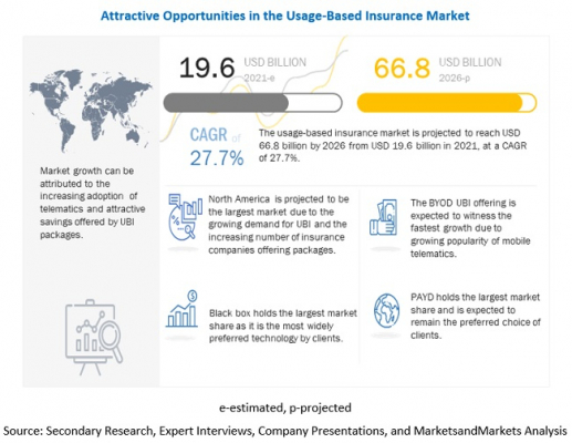 Usage-Based Insurance Market for ICE & Electric Vehicle by Package (PAYD, PHYD, MHYD), Technology (OBD-II, Black box, Smartphone, Embedded), Vehicle Age (New, Old), Device Offering (BYOD, Company Provided) and Region - Global Forecast to 2026