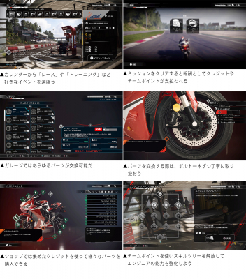 この「キャリアシミュレーションモード」では、ミッションをクリアすることでチームやライダーを強化し育成していきます。さらに、集めた報酬でパーツを購入し、自分の理想に合わせたマシンのセッティングが可能となります。