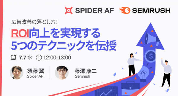 本セミナーでは、広告運用に必要だけれども意外と知られていないROI向上のためのノウハウを、オールインワン競合分析ツール「Semrush」と広告不正を検知するアドフラウド対策ツール「Spider AF」がご紹介します。