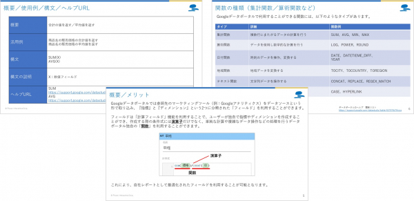 デジタルマーケティングのコンサルティングを行う株式会社パワー・インタラクティブ(大阪市中央区、代表取締役:岡本充智)は、Googleが提供する無料のBIツール「Googleデータポータル」の応用編マニュアルを2021年6月23日に公開しました。弊社では2017年から、Googleデータポータルの基本的な操作をまとめた無料マニュアルを提供してきましたが、今回は「関数の活用」に焦点をあてた応用編の内容になっています。