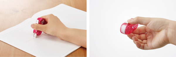 片手で簡単に開閉ができて、操作性抜群の「シャッターキャップ」を採用。使用後は、ケースの中にヘッドが収納されるのと連動して、ふたがしっかり閉まるので、「糊部分にゴミが付いて汚れてしまう」「携帯時に不意に開いてしまう」といった不満を解消します。
