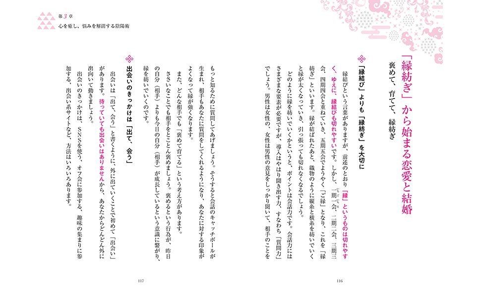 恋愛を含めた人間関係の改善、健康維持、金運や仕事運の上昇など、混迷する現代に生きる人たちの不安を解消し、進むべき道を指し示す指南書です。