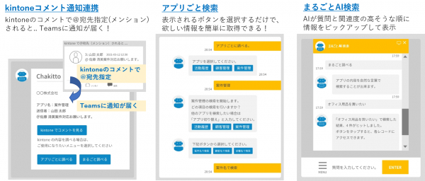 ※ Chakitto(チャキット)・・ Chat(チャット)とkintone(キントーン)の掛け合わせを意図したサービス名称。