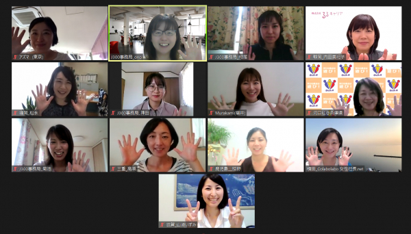(写真は2021年6月11日に実施されたアンバサダーによるオンライン会議の様子。全国各地で活躍する女性起業家たちがアンバサダーとして、女性起業家支援策を協議しています)
