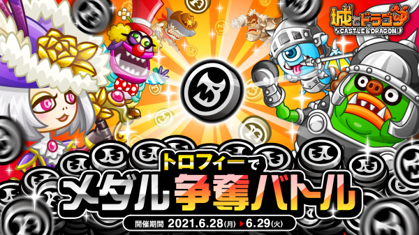 株式会社アソビズム(本社:東京都千代田区、代表取締役:大手智之)は、App Store・Google Playにて好評配信中の『城とドラゴン』で「トロフィーでメダル争奪バトル」を2021年6月28日(月)より開催いたします。