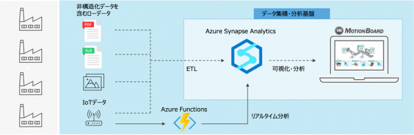 -非構造化データをAzure Synapse AnalyticsのもつETL機能を活用し、標準化した上で全て格納することで、複雑なデータプレパレーションを行うことなくMotionBoard上でデータ分析・可視化が可能に。
