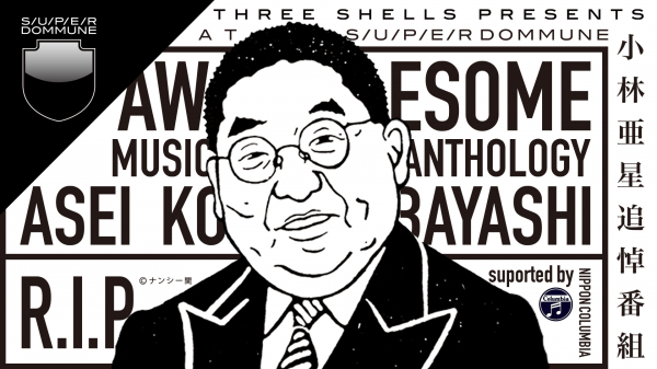 2021年5月30日、アニメ・CM音楽の大御神・小林亜星が88歳で急逝した。慶應義塾在学時から才能を発揮して、服部正に師事。生涯に6000曲を超える作品を生み出した。CM音楽は、レナウン・イエイエ、どこまでも行こう、この木なんの木気になる木、サントリーオールドのディンドンディドンシュビダドン、パッ!とさいでりあ、カゴメケチャップ赤いキッス、等、等、等。アニメは主題歌を中心に、魔法使いサリーのマハリクマハリタヤンバラヤンヤンヤン、コン・バトラーVのVVVヴィクトリー!!!!!!! ターンAガンダムのターンAーターン、ガッチャマン、キックの鬼、オオカミ少年ケン、ドロロンえん魔くん、怪物くん、プロゴルファー猿…..等、等、等。スキャットを巧みに駆使して、海馬に瞬時に刷り込み、大脳皮質にファイリングされるような印象的で中毒性のあるメロディーを"オシャレでシックな"反復でつなぐ。没後1ヶ月に近い本日は、四十九日法要目前の小林亜星先生に哀悼の意を表し、列島全域の哀しみを勝手に代表して、西耕一と宇川直宏がASEIを偲ぶ。そして後半は、DJフクタケがASEI Onlyのプレイを全店舗がシャッターを下ろした後の渋谷区宇田川町の渋谷PARCO9Fより、音楽葬がわりのお別れの儀として7インチを円軌道に乗せ続ける!!!!!!! そして御歳95歳の神作曲家=渡辺宙明と、ゼブラボールペンで共演した田中由美子(仮面ライダースーパー1ヒロイン)からのビデオ弔辞も!!!!!!! 亜星世界のスキャットの魅力、亜星時空の作曲の秘密、リアル亜星の人柄や名言も超越人力で呼び覚ましつつ、亜星を浴び続け、亜星に喝采を送り続ける一夜…..そんなDOMMUNE流のSUPER追悼SPECIALを緊急敢行する!!!!!!! 題してR.I.P. ASEI KOBAYASH「AWESOME MUSIC ANTHOLOGY」!!!!! 日本コロムビアのサポートでお送り致します!!!!!!!(Text by 西耕一 & 宇川直宏)