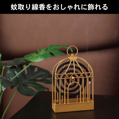 【蚊取り線香をおしゃれに飾る】 レトロな鳥かごデザインがエモい。 最大直径12.5cmの渦巻き型蚊取り線香に対応。