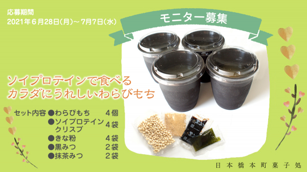 この度、多くの方に新しい「わらびもち」をお試しいただくために、2021年6月28日からモニター募集キャンペーンを実施しています。