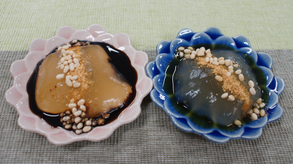 わらびもちにはオリゴ糖とオオバコを使いました。