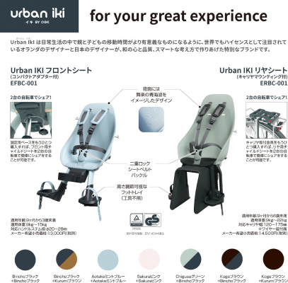 自転車用チャイルドシートの国内シェア6割を超えるオージーケー技研株式会社(本社:大阪府東大阪市、代表取締役:木村 泰治)が、2017年春にヨーロッパでスタートしたブランド「Urban Iki(アーバンイキ)」の自転車用チャイルドシート2種(フロント/リヤ)を7月1日よりオンラインストア(https://ogk-giken.shop-pro.jp/)と、順次取扱店(※)で発売します。当製品は、「iF Gold Award」「Red Dot award」など、国際的な権威あるデザイン賞を多数受賞した高いデザイン性、欧州の最高基準を満たす品質と、コストパフォーマンスの高さが評価され、ヨーロッパ市場で販売数10万台を突破しています。