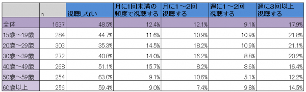 TV・ネット動画の視聴に関する調査の実施と集計結果の詳細はこちら。