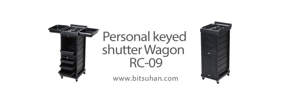 今回ピックアップした「パーソナル鍵付 シャッターワゴンRC-09」は、フロア内に置いたままでも大切な備品を保管できる鍵付ワゴンです。天板にスライド式ホルダー、引き出しパットの装着が可能の2WAY仕様。優れた機能性と使い勝手の良さでサロンワークをしっかりサポートします。