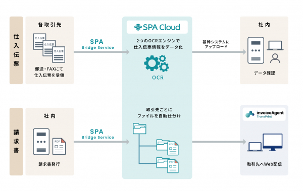 請求書の電子化の要望に加え、コロナ禍におけるテレワークへの対応もあり、請求書のWeb配信の仕組みの構築を検討しました。OCR基盤として導入していた「SPA Cloud」との連携しやすさに加え、取引先ごとにファイルを自動仕分けする機能を備える「invoiceAgent TransPrint」を評価し、2020年11月から「invoiceAgent TransPrint」を利用した請求書のWeb配信を開始しました。