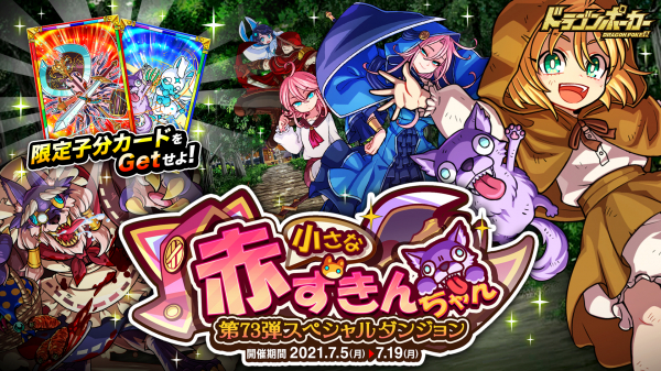 株式会社アソビズム(本社:東京都千代田区、代表取締役:大手智之)は、App Store・Google Playにて好評配信中のリアルタイム合体カードバトル『ドラゴンポーカー』で、2021年7月5日(月)より新スペシャルダンジョン「小さな赤ずきんちゃん」を開催いたします。