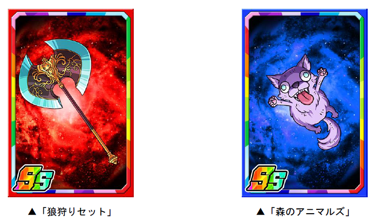 ダンジョンのボスモンスターを倒すと、まれに新たな限定子分カード「狼狩りセット」「森のアニマルズ」が手に入ります。