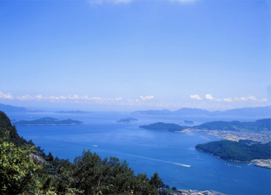 岡山県との県境までを見渡すと、香川県の約半分は瀬戸内海が占めています。昭和9年にわが国で初めて国立公園に指定されたこの海域には、オリーブと「二十四の瞳」で有名な小豆島をはじめ、塩飽諸島(しわくしょとう)など大小多数の島々が点在し、きめ細やかな人情と豊かな自然に恵まれた暮らしがあります。
