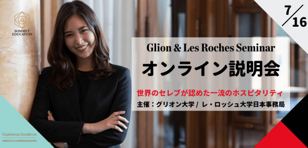 スイス式ホスピタリティ教育を世界4か国で提供するソメット・エデュケーションの日本事務局(所在地:東京都渋谷区、以下グリオン/レ・ロッシュ日本事務局、運営:iaeグローバルジャパン株式会社)は、2021年7月16日(金)と30日(金)に海外のホスピタリティ/ホテル大学へ進学を希望する学生、社会人、保護者の方を対象に「ホスピタリティ/ホテル大学留学説明会」をオンラインで開催する。