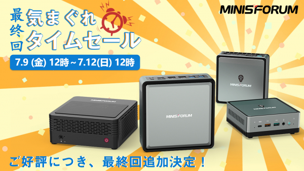 BESSTAR TECH LIMITEDが運営するミニパソコンメーカーのMinisforum(ミニーズフォーラム)は、この間Minisforum日本公式ストア(https://store.minisforum.jp/)で開催いたしましたタイムセールが大変ご好評をいただいたため、1周年祭が終わる前にもう一回追加を決定いたしました。