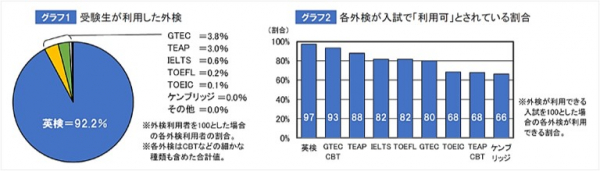 ※グラフ1、2の関係は、「大学が利用可としている外検=グラフ2」⇒「それでは実際、受験生はどの外検を使ったのか=グラフ1」となる。