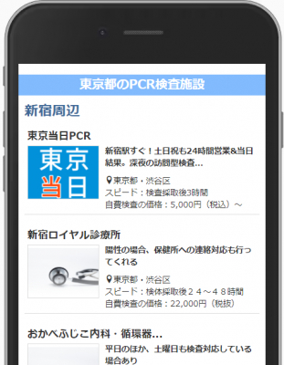 「東京都のPCR検査施設63選」の特徴