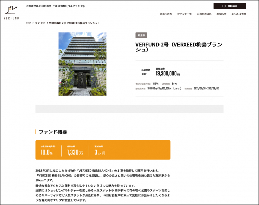 株式会社ベルテックス(本社:東京都新宿区 代表取締役:梶尾祐司)は、2021年7月20日より不動産特定共同事業法に基づく不動産投資商品『VERFUND(ベルファンド)』の第2弾の出資申込を開始します。