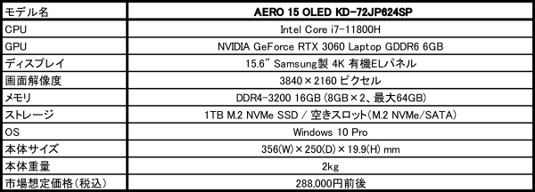 https://www.gigabyte.com/jp/Laptop/AERO-15-OLED--Intel-11th-Gen