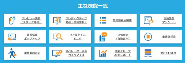 アウトバウンドでもインバウンドでもご利用いただける機能が豊富に標準搭載されております。