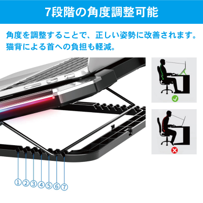 ・【 7段階の角度調整 】エルゴノミクスデザインで、首や肩が疲れにくい角度で使用できる。