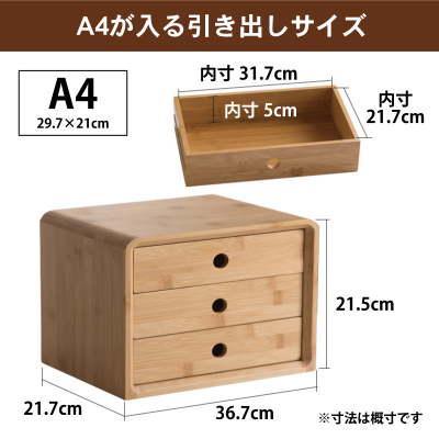 Lサイス:A4サイズ書類サイズ(引き出し内寸:31.7×21.7×5cm、本体:36.7×21.5×21.7cm)