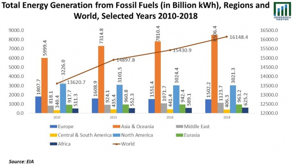 米国エネルギー情報局(EIA)の統計によると、化石燃料からの発電量は2010年の136206.9億kWhから2018年には161483.7億kWhに増加しました。