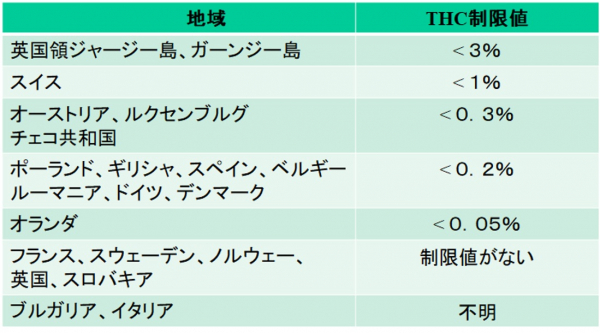 図1 欧州におけるCBD製品のTHC制限値