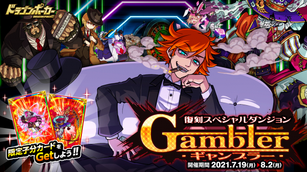 株式会社アソビズム(本社:東京都千代田区、代表取締役:大手智之)は、App Store・Google Playにて好評配信中のリアルタイム合体カードバトル『ドラゴンポーカー』で、2021年7月19日(月)より復刻スペシャルダンジョン「Gambler」を開催いたします。