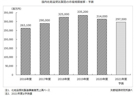 株式会社矢野経済研究所(代表取締役社長:水越孝)は、国内の化粧品受託製造市場を調査し、現況、参入企業の動向、および将来展望を明らかにいたしました。