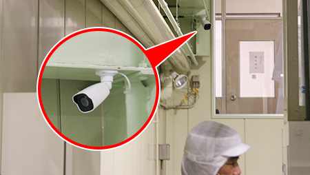 IPカメラ「Secula」を工場内に設置すると従業員の身だしなみ、工場内の衛生状態、従業員の勤務態度、マニュアルに則った行動かどうかなどのチェックを遠隔地から一挙に行えます。リアルタイムでのカメラ映像の視聴はもちろんのこと、録画した内容を後から見返すこともできるので、より厳格な工程管理が行えます。